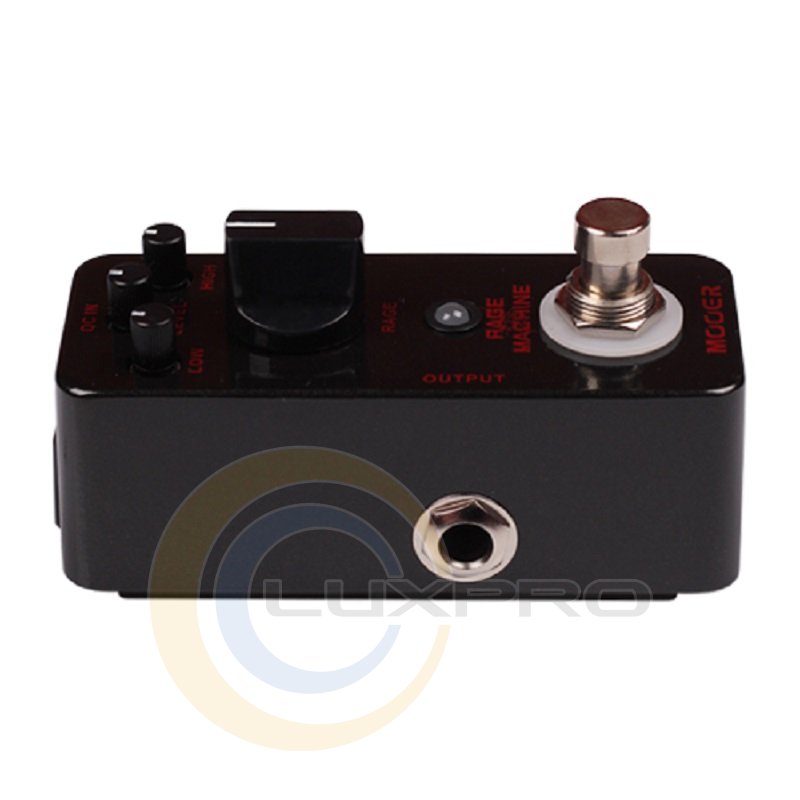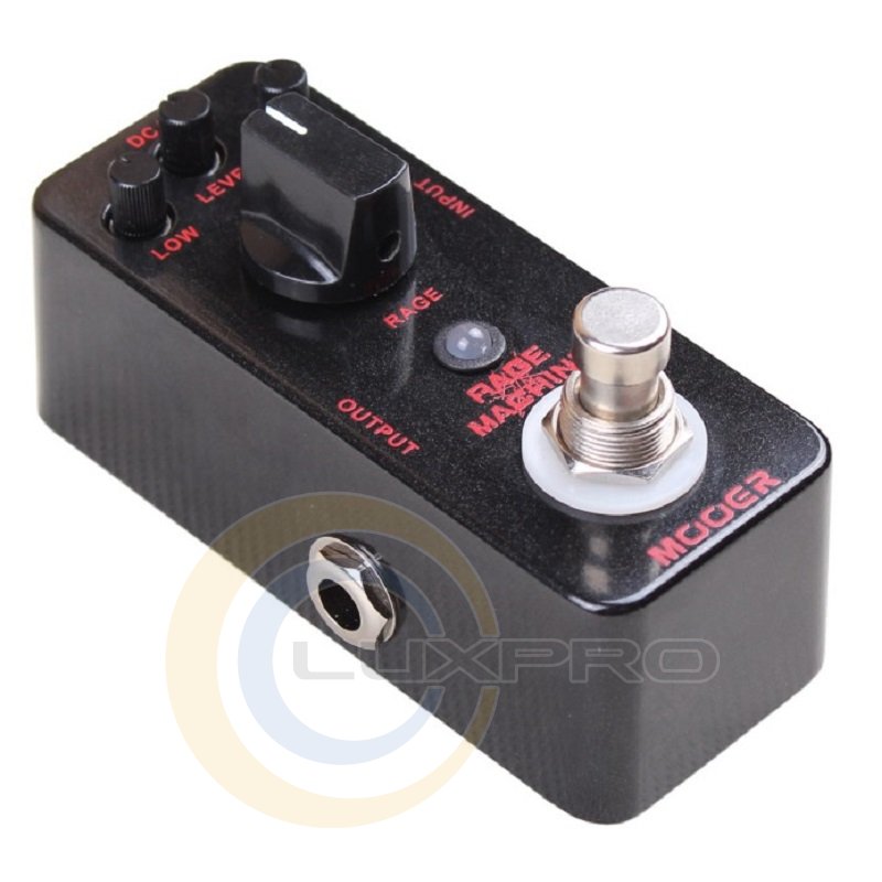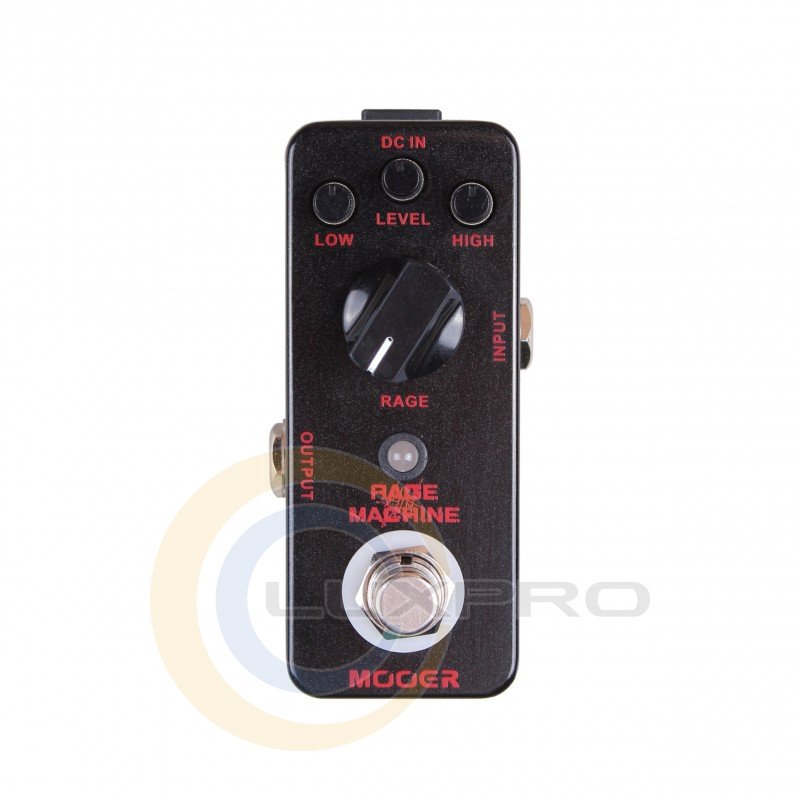 Rage Machine можно перевести как «Машина ярости». Такое красноречивое название прямо указывает на характер данной педали от бренда Mooer. Это настоящий брутальный дисторшн, звучащий в лучших традициях хэви- и трэш-метала. Если вы являетесь поклонником творчества таких известных метал-групп, как Metallica и Annihilator, то саунд этой компактной педали доставит вам истинное удовольствие.С помощью такой педали можно довести своё звучание до пиковых отметок абсолютного дисторшн. Звуковая палитра Rage Machine характеризуется сочным, хрустящим перегрузом с разборчивыми и чёткими текстурами. Эта педаль поможет вашей электрогитаре играть по-настоящему «злобно».Устройство обладает небольшими габаритами и легко поддаётся транспортировке — такую педаль удобно всегда держать под рукой. Собрана она в мощном металлическом боксе, стенки которого надёжно оберегают электронные «внутренности» от ударов и повреждений.На рабочую панель вынесен стандартный набор контроллеров: low, high, level, rage. Режим активности эффекта подсвечивается с помощью специального индикатора.Характеристики: