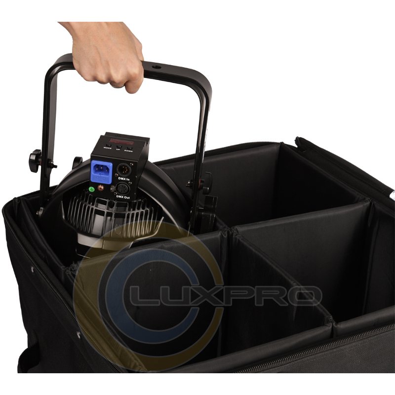 G-PAR 64LED8 - сумка-кейс изготовлена из прочного нейлона с внешним карманом для аксессуаров, колесами и выдвижной ручкой для удобной транспортировки. Удерживает 8 светодиодных ламп Par 64.