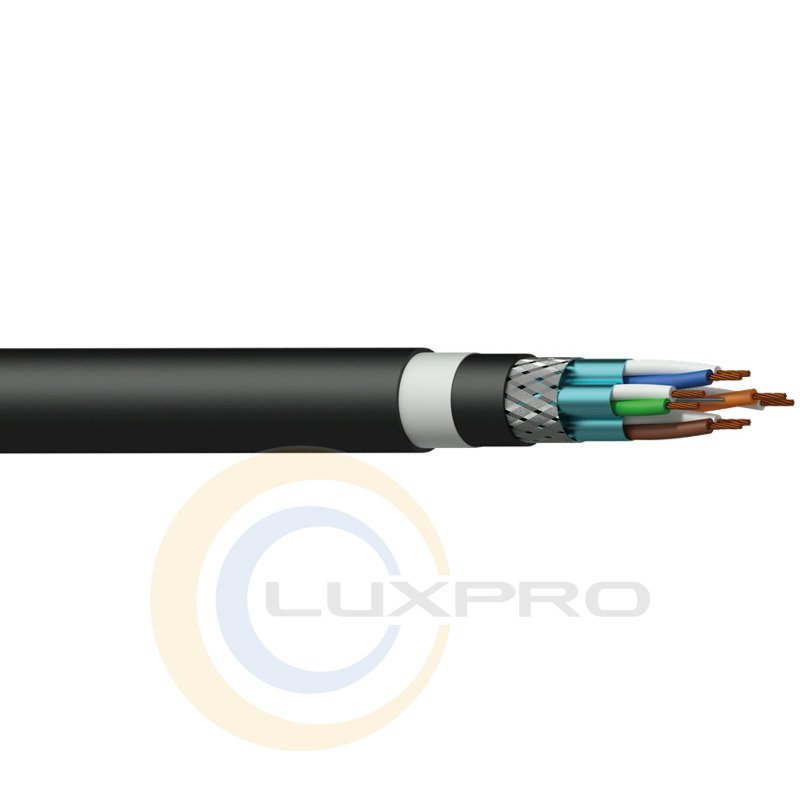 - Экранирование S/FTP (общий экран из луженой медной оплетки, индивидуальные экраны пар из алюминиевой фольги), высокая защищенность от внешних наводок.