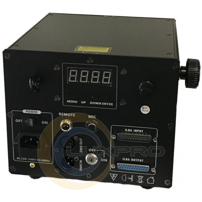 Pro RGB 1w - трехцветная модель лазерного проектора, которая активно используется для проведения дискотек, музыкальных концертов и прочих увеселительных мероприятий небольших масштабов как в помещении, так и за его пределами. Качество проецируемых лазеров не оставят равнодушными даже самых требовательных пользователей. Проектор Pro RGB 1w относится к полноцветным лазерам с мощностью 1000 mw. Источниками света являются 3 цвета: синий, зеленый и красный с мощностями 445 мВт, 520 мВт и 638 мВт. Напряжение составляет 100-240 В переменного тока 50/60 Гц. Режимы управления осуществляются через Авто / Звук / DMX / Master-slave/ILDA.