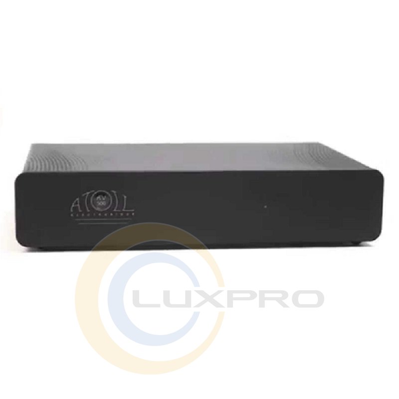 Оконечник Atoll AV 500, который является единственным пятиканальным усилителем в линейке французской компании, станет отличным выбором для тех, кто испытывает необходимость в увеличении мощности и динамики своих театральных систем, а также стремится несколько улучшить качество их звучания. Модель можно подключить к AV-процессору или же к выходам предусилительной части ресивера.Мощник получил надежное стальное шасси толщиной в 1,5 мм и слегка выступающую за пределы корпуса четырехмиллиметровую фронтальную панель с овальными углами, изготовленную из алюминиевого сплава. Дизайн выполнен в фирменном минималистском стиле. На фасаде есть только логотип бренда и светодиод, указывающий на включение питания, которое подается при нажатии тумблера, расположенного на задней панели.Аппарат обладает полностью симметричными каскадами, включающими в себя дискретные элементы. На выходной контур каждого канала приходится по одной паре мощных МОП-транзисторов. Причем каждый из «полевиков» имеет свой собственный теплоотвод. Усилитель оснащен солидным блоком питания с двумя массивными тороидальными трансформаторами (по 330 ВА каждый), установленными сразу за передней панелью. Оконечник способен обеспечить мощность в 85 Вт на каждый из пяти каналов при нагрузке в 8 Ом и 100 Вт при 4 Ом. Общая емкость десяти буферных электролитических конденсаторов равна 73000 мкФ. Диапазон частот достигает верхней границы в 200 кГц, что будет вполне достаточно для прослушивания современных HD-форматов.Балансных входов у Atoll AV 500 нет, зато есть пять входных разъемов RCA для каждого из каналов ДК и такое же количество выходов, благодаря которым можно легко организовать подключение акустики по типу bi-amping. Подсоединение к таким выходам дополнительных мощников поможет обеспечить отдельное усиление для разных полос каждой колонки, что, несомненно, положительно отразится на качестве саунда. Предусмотрено пять пар добротных позолоченных акустических клемм.Особенность данного усилителя – легкое открытое звучание, внимание к деталям и хороший ритмичный бас. Благодаря своим превосходным музыкальным способностям он может использоваться не только в театральных комплектах, но и в стереосистемах высокого класса.Характеристики: