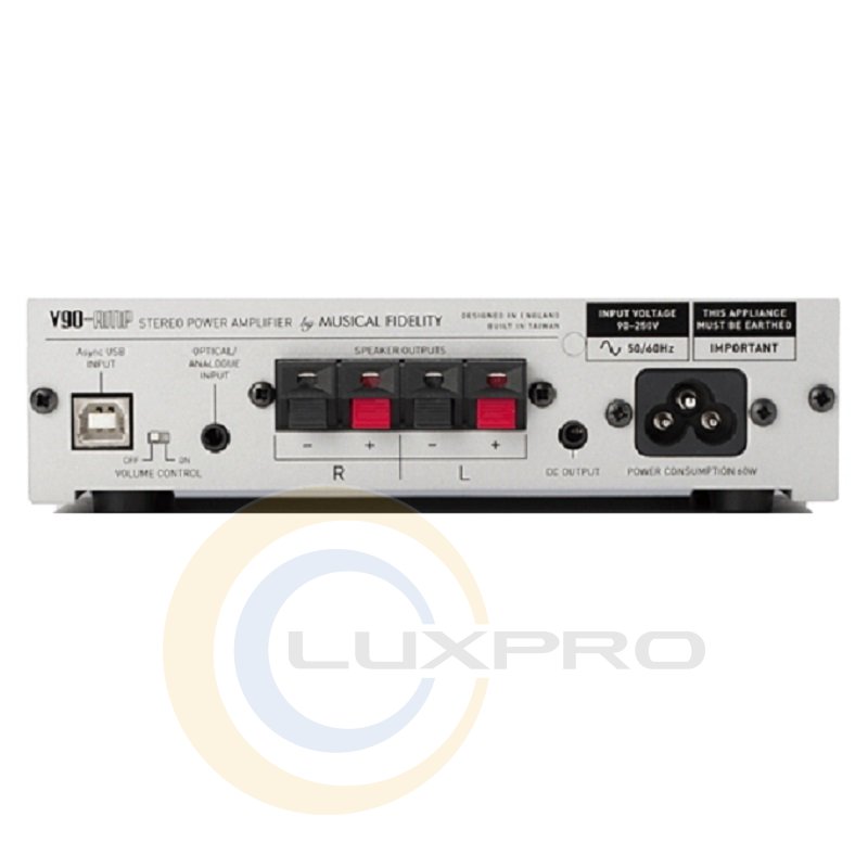 Проектируя полный усилитель V90–AMP, инженеры ставили задачу создать универсальный аппарат, способный работать с любым источником сигнала. Именно поэтому на коммутационной панели усилителя, помимо традиционных аналоговых входов, есть порт USB и цифровой оптический вход, совмещенный с линейным в виде 3,5 мм разъема мини-джек. Для подключения акустических систем служат подпружиненные клеммы.К порту USB, помимо ПК, можно подключить другие источники цифровых аудиоданных, например док-станцию Apple Airplay. Читаются файлы вплоть до 24 бит/48 кГц. Высокое входное сопротивление V90–AMP гарантирует корректную работу усилителя с любым источником аналогового аудиосигнала. Несмотря на компактные размеры, новинка обеспечивает выходную мощность 20 Вт/кан. (8 Ом). Диапазон рабочих частот при неравномерности АЧХ 3 дБ лежит в пределах от 10 Гц до 20 кГц.Интеллектуальная система автоматической коммутации позволила избавиться от привычного селектора входов. Заметим, что даже если порт USB постоянно подключен к ПК, но через него не ведется передачи данных, V90–AMP автоматически переключится на активный оптический или аналоговый порт. В результате на передней панели аппарата имеется только регулятор громкости, совмещенный с выключателем питания.Характеристики: