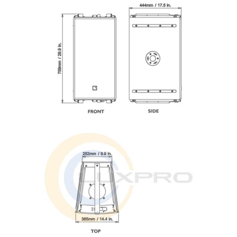 Диапазон рабочих частот системы составляет от 55 Гц – 20 кГц. За счет использования сабвуфера SB18m порог частоты можно понизить до 32 Гц. Высокочастотный DOSC волновод обеспечивает симметричную диаграмму направленности с углами раскрытия 15° x 90°.