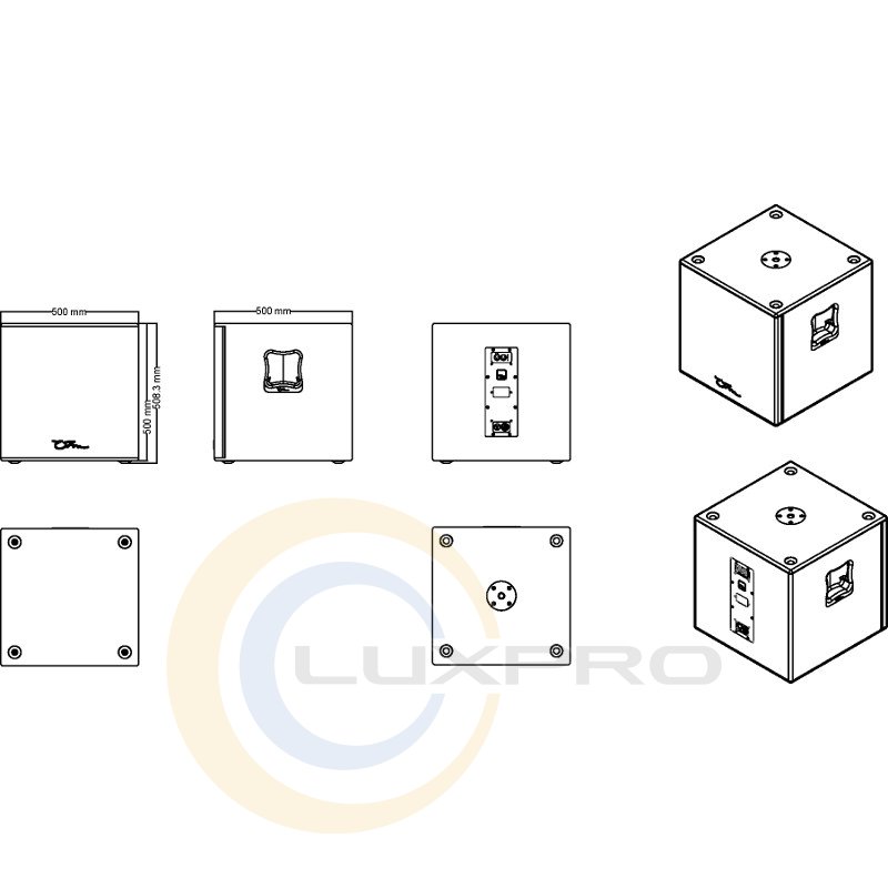 Варианты монтажа включают резьбовую вставку для монтажа на стойку (TP-1), секции для удобного хранения или складывания вместе при использовании в более крупной системе и внутренних карманных ручках для удобства транспортировки. Задняя соединительная пластина имеет два входных и двухразрядных разъема XLR и powerCON® TRUE1 и стандартная вставка.