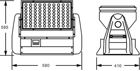 Входное напряжение: AC90/260V 50-60 Гц, источник света: 144PCS 3W 4-IN-1 LEDs, RGBW, DMX512, master-slave и звуковая активация, встроенные программы, 4/6/8 DMX-каналов USITT DMX-512, потребляемая мощность: 870 Вт, размеры: 410х580х585 мм, вес: 23 кг.