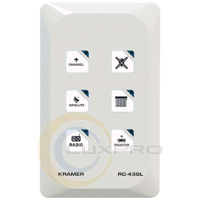 RC-43SL – универсальная панель управления, вспомогательный контроллер K-NET™ с 6-ю сенсорными кнопками, вспомогательный контроллер зала. Позволяет управлять AV-оборудованием, оснащением зала (свет, шторы, проекционные экраны) через интерфейсы RS-232, Ethernet, по ИК, с помощью замыкаемых контактов. Может быть подключена к шине K-NET для работы с контроллерами презентационных залов, совместима с протоколом управления Kramer Site-CTRL. Специальное ПО K-Config для конфигурации, обновляемая микропрограмма управления.Характеристики: