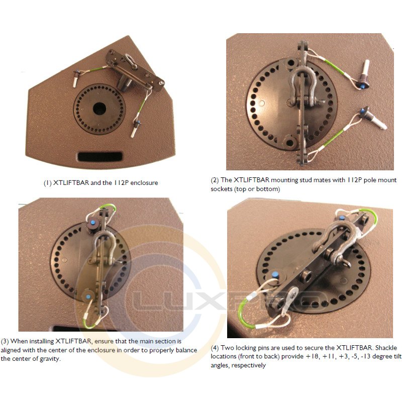 Для удобства установки в корпус 112PW встроен стакан для установки на штатив, а доступные опционально аксессуары крепления включают в себя: кронштейн для крепления к стенам, потолку или фермам, планка для подвеса 112PW (5 точек подвеса для настройки угла наклона).