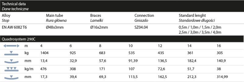 Ферма QUA 290 A выполнена из трубы 48 x 3 мм и перемычек 16 x 2 мм, оборудована коническим коннектором - гнездом SZ 04.04. Алюминиевая ферма благодаря своей конструкции имеет привлекательный, не громоздкий вид и большую выносливость, высокую устойчивость к воздействию на них больших нагрузок. С применением наших систем можно создавать разнообразные конструкции в зависимости от поставленной цели. В том числе алюминиевые фермы могут быть основанием конструкции крыши сцены, могут применяться для создания конструкций выставочных павильонов, конструкций для крепления проекционных и LED экранов, секций для расположения звукового и осветительного оборудования. Качество каждой фермы находится на максимально возможном для подобного вида изделий уровне, что подтверждено сертификатами ISO DIN 4113 и TUV, а каждый элемент прошел несколько стадий проверки качества.