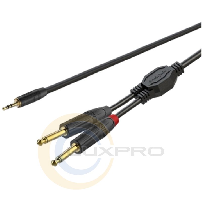Готовый кабель Roxtone GPTC100L5 - 1x3.5 мм stereo Jack - 2x6.3 мм mono Jack, длина 5 м, цвет черный.