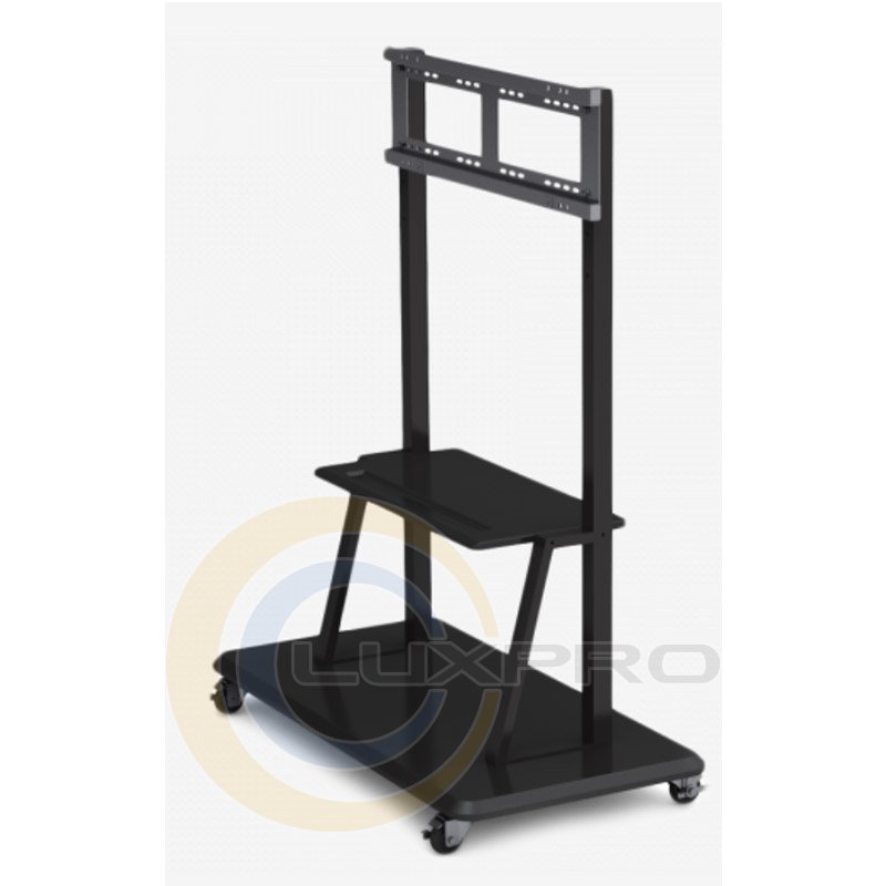 Мобильная подставка от бренда INTBOARD для размещения интерактивного дисплея (максимальная диагональ - 80"). Оборудована колесиками для удобного перемещения, которые имеют поворотный механизм. Также имеется полка для хранения аксессуаров и мелочей.