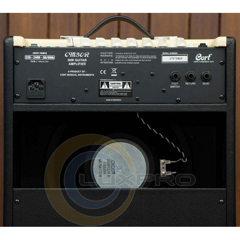 CORT CM30R (BK) - гитарный комбоусилитель, мощность: 30 Вт R.M.S., динамик: 10", эквалайзер: трехполосный, эффекты: ревербератор, управление: громкость чистого канала, громкость и чувствительность драйв канала, эквалайзер, ревербератор, Bluetooth, аналоговые выходы: выход для наушников, CD IN вход, вход для подключения футсвича, петля эффектов (Send, Return), размеры: 380 x 365 x 200 мм, вес: 9 кг, производство: Индонезия.Комбоусилитель CORT CM30R (BK) отличается тем же харизматичным винтажным дизайном, что и CM15R, но имеет в два раза больше выходной мощности. Благодаря этому он является отличным выбором для музыкантов, ищущих компактный, но мощный усилитель для репетиций или выступлений на небольших сценах.Помимо обновленного дизайна, инженеры Cort также тщательно усовершенствовали схемотехнику комбоусилителя CORT CM30R (BK) для того, чтобы улучшить качество звучания и расширить тональную палитру, без добавления множества переключателей и регуляторов. Переключатель Clean/Crunch позволяет вам выбирать между теплым и ярким чистым тоном и искрящимся хрустящим кранчем. Нужно еще больше гейна? Нажмите кнопку CH Select и мгновенно активируйте модерновый хай-гейн дисторшн, чувствительный к вашему звукоизвлечению и положению ручки громкости на гитаре.Комбоусилитель CORT CM30R BK совместим с протоколом Bluetooth, что позволяет подключать к нему ваш смартфон, планшет или компьютер и репетировать под любимые композиции, или просто слушать музыку.Мягкое и объемное звучание высококачественного цифрового ревербератора добавит тембру вашего инструмента сочности и насыщенности. Специально адаптированный под частотный диапазон электрогитары, он способен воссоздать как небольшую комнату так и громадный холл, а для максимального удобства все управление производится одной единственной ручкой.Стандартный 3,5мм Aux вход позволяет легко подключать к усилителю смартфон, медиаплеер или любой другой источник аудиосигнала. Выход для наушников дает возможность заниматься музыкой в любое время дня и ночи не беспокоя окружающих. Гитарный комбо CORT CM30R (BK) имеет петлю эффектов, позволяя использовать внешние гитарные процессоры или предусилители.Характеристики: