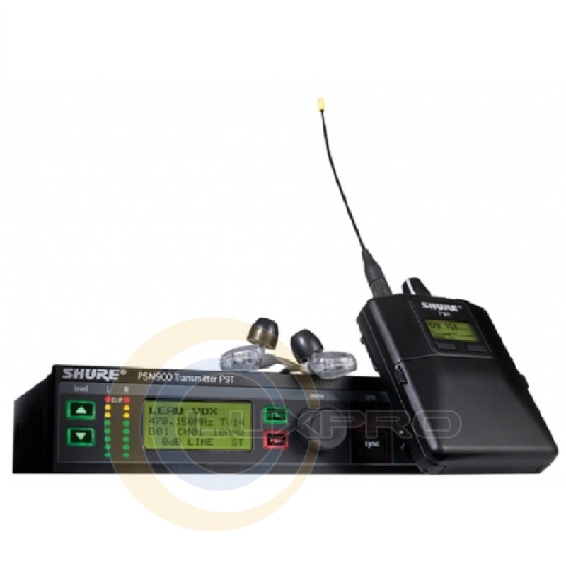 Радиосистема безпроводного мониторинга SHURE P9TER-R22. В состав системы входит передатчик SHURE P9TE, безпроводной поясной приемник SHURE P9R системы PSM900 и ушные мониторы SE425-CL.Характеристики: