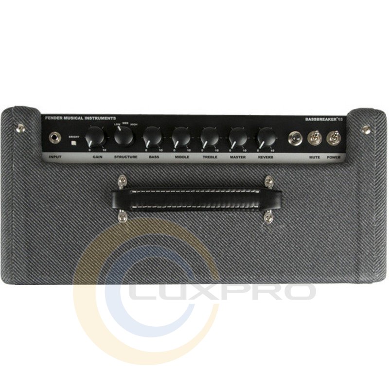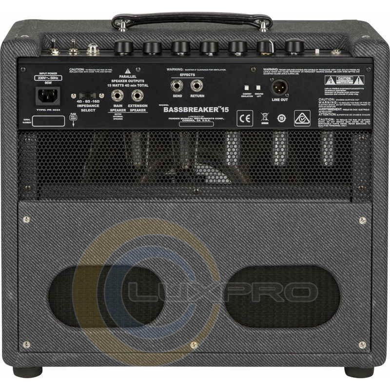 FENDER BASSBREAKER 15 COMBO - комбоусилитель для электрогитары класса А/B, мощность 15 Ватт, лампы - 3х12АХ7 и 2хEL84, три уровня гейна, управление - Bright, Gain, Structure, Bass, Middle, Treble, Master, Reverb; XLR выход для записи, спикер - 12" Celestion V-Type.Характеристики: