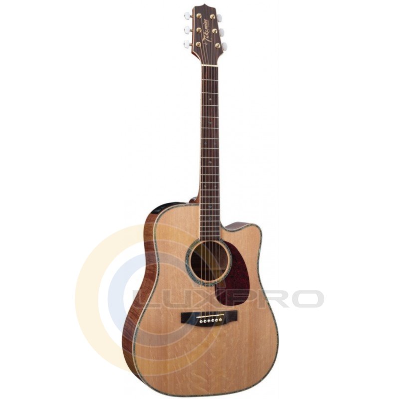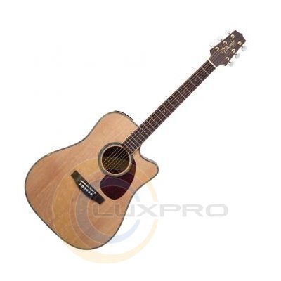 TAKAMINE EG340DLX - электроакустическая гитара, верхняя дека - цельная ель, обечайка и задняя дека - красное дерево, преамп, цвет натуральный. Шестиструнная электроакустическая гитара TAKAMINE EG340DLX обладает великолепным внешним видом и чистым звуком. Гитара TAKAMINE EG340DLX имеет форму дредноут, верхняя дека изготовлена из цельной ели, а нижняя дека и обечайка из красного дерева, что придает гитаре ощущение качественного и ценного инструмента. Гриф гитары имеет 20 ладов, палисандровую накладку и литые позолоченные колки. Электроакустическая гитара TAKAMINE EG340DLX оборудована преампом TP-4T со встроенным тюнером и трехполосным эквалайзером.Характеристики: