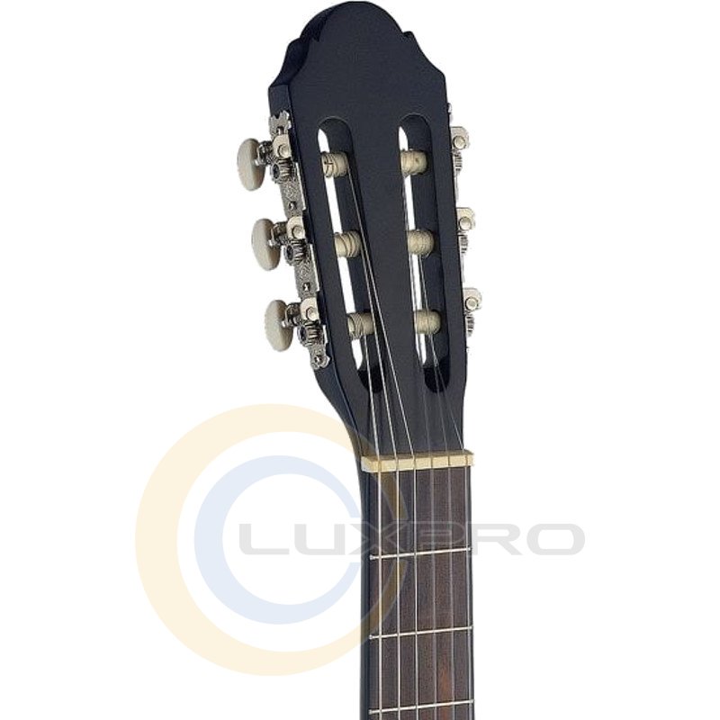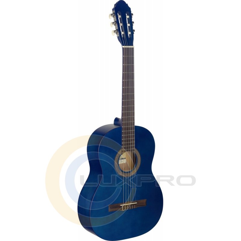STAGG C440 M BLUE - классическая гитара начального уровня с отличной сборкой и доступной ценой, которая станет идеальным выбором для тех, кто только решил начать освоение этого прекрасного музыкального инструмента. Данная модель разрабатывалась с учетом всех тонкостей конструкции, чтобы обеспечить максимальный комфорт и достойное звучание. Полноразмерный корпус (4/4) данной модели имеет классическую форму с надежной системой связей верхней деки, которая гарантирует улучшенный резонанс и передачу вибрации струн. Для верхней деки, обечайки и нижней деки производитель использовал липу. Благодаря чему гитара способна обеспечить достойное звучание. Также в C440 M удобный профиль грифа, благодаря которому руки не будут быстро уставать. На накладке грифа из композитного ореха находятся 19 ладов стандартного размера. Ширина накладки грифа у верхнего порожка составляет 51 мм, у нижнего порожка - 66 мм. Гриф присоединяется к деке при помощи надежного крепления типа "ласточкин хвост". Вместе с классическими никелированными колками с открытой конструкцией можно не беспокоиться о стабильности гитарного строя. C440 M поставляется с установленным фирменным набором нейлоновых струн. У C440 M BLUE корпус синего цвета с матовой внешней отделкой.