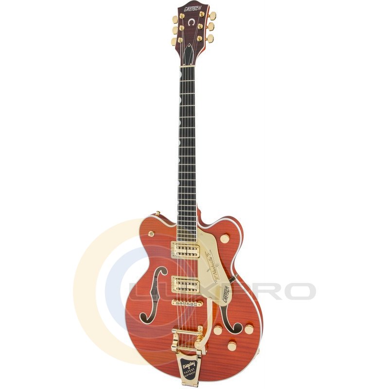 GRETSCH G6620TFM PLAYERS EDITION NASHVILLE ORANGE STAIN - полуакустическая электрогитара, с центр-блоком из ели, материал деки - огненный клен, гриф - клён/черное дерево, звукосниматели - High-Sensitive Filter'Tron, локовые колки Gotoh, тремоло-Bigsby, цвет - оранжевый, кейс в комплекте.Характеристики: