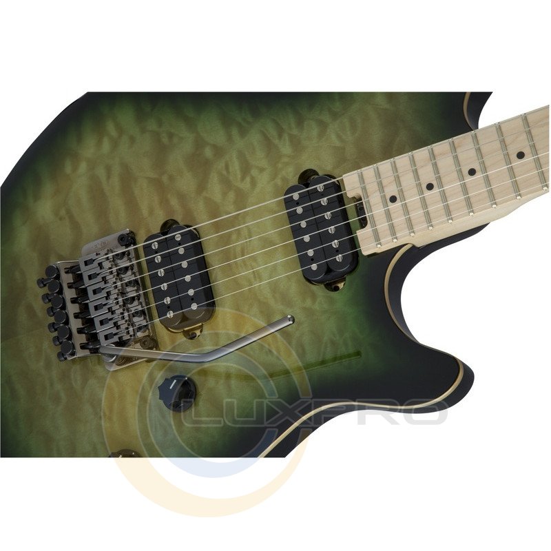 EVH WOLFGANG STANDARD MN MATTE ZILLA BURST - электрогитара, дека - липа/стеганный клен, гриф - клен/клен, звукосниматели - Direct Mount Wolfgang® Humbucking, бридж - EVH®-Branded Floyd Rose® Locking Tremolo with EVH D-Tuna, цвет — зеленый.Характеристики: