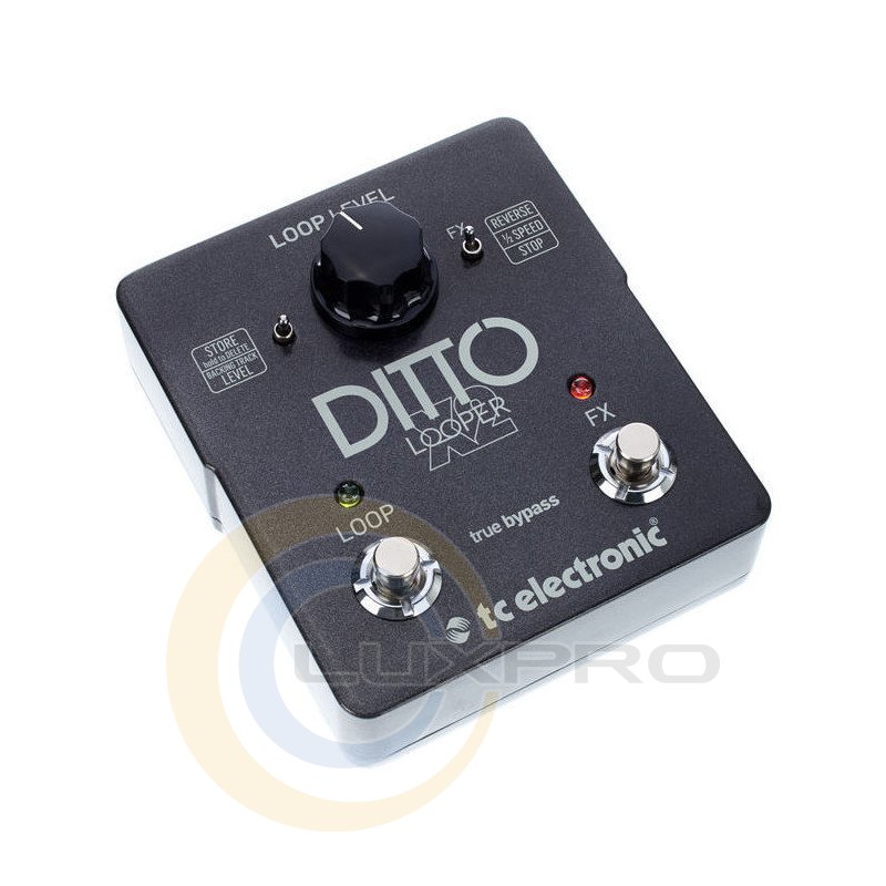 TC ELECTRONIC Ditto X2 Looper - педаль эффектов Looper, 2 входа, 2 выхода, запись до 5 минут, FX Revers, 1/2 Speed, Stop, неограниченное количество наложений, True Bypass, USB Mini-B, металлический корпус, питание от блока питания 9В или от батареи, USB кабель в комплекте. Невероятный успех супер-компактного лупера Ditto looper среди гитаристов вдохновил инженеров компании TC Electronic на развитие модели Ditto Looper X2, которая может гараздо больше чем просто записывать и проигрывать лупы.