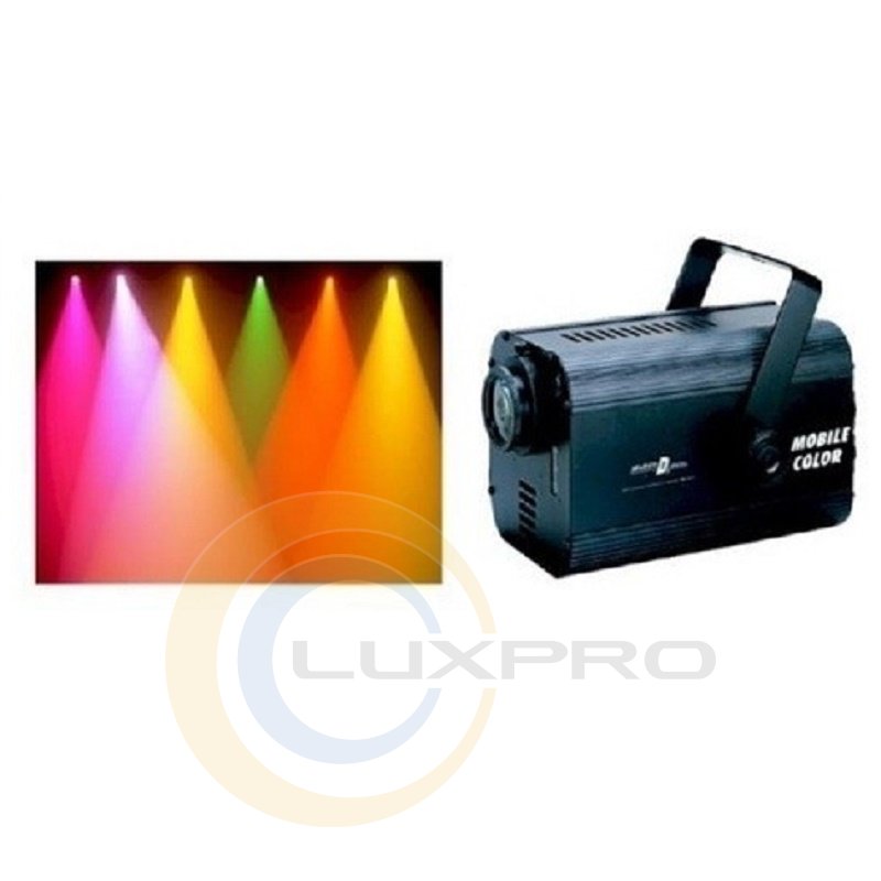 Acme MH-600 A MOBILE COLOR - дискотечный прибор, колорченджер, 10 цветов + белый, звуковая активация или 1 канал DMX 512, стробирование, режим Master-Slave, лампа EFR 15V 150W с рефлектором (50 часов).Характеристики: