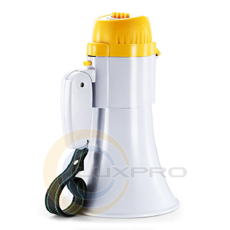 Ручной мегафон Sky Sound MG-2B (BATTERY) громкоговоритель с записью и встроенной сиреной. Укомплектован Li аккумулятором. Складная ручка обеспечивает компактность данной модели. Высококачественный ABS пластик. Стильный, яркий, призывающий бело-желтый глянцевый корпус.