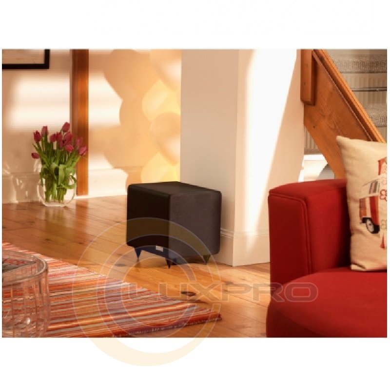 Сабвуфер изготовлен в корпусе из толстого МДФ практически кубической формы, усиленном внутренними стяжками для гашения паразитных вибраций стенок. Tannoy TS2.8 оснащен двумя низкочастотными динамиками, которые расположены на боковых панелях, что способствует более равномерному распределению низких частот в комнате прослушивания. Диффузоры динамиков изготовлены из прессованной древесно-бумажной массы и закреплены на широких эластичных подвесах, обеспечивающих их линейное перемещение с большой амплитудой. Динамики закрыты защитными сетками, которые полностью прикрывают боковые панели. Динамики подключены к усилителю мощностью 200 Вт, который работает в экономичном классе D и практически не рассеивает тепло. Мостовой режим работы усилителя также повышает эффективность использования энергии блока питания, благодаря чему басы у Tannoy TS2.8 быстрые и насыщенные.