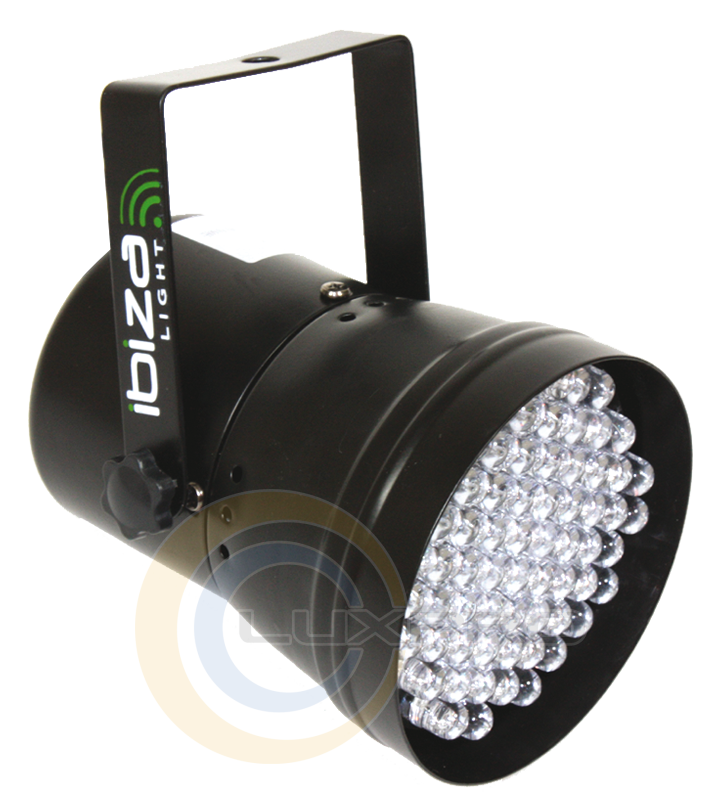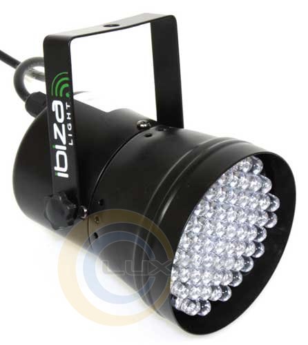 Светодиодный светильник, 61 светодиод. Имеет несколько режимов работы: DMX512, Master/Slave, автоматический, управляемый музыкой. Есть быстрая и медленная смена цвета