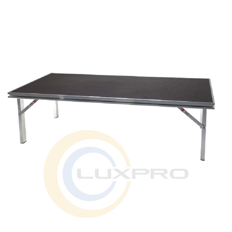 Платформа Optimus с 4 встроенными складными ножками. Размеры: 35 x 140 см, высота 60 cm, высота при складировании 4 см. Комплектующие: финская трафаретная плита толщиной 12 мм с слоем препятствующим скольжению, 1 X-соединитель и быстрый соединитель. Проверено TÜV с полезной нагрузкой 500 кг / м². Вес от 15 кг.Легковесный сценический подиум подходит для использования внутри помещений, а также для наружного применения. Удобный сценический подиум, который можно легко собрать и разобрать одним человеком и который займет как можно меньше места на складе.Характеристики: