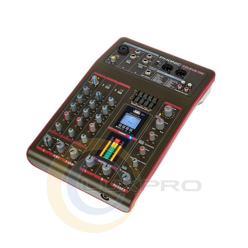 CELEUS 100 — микшерный пульт, 5 каналов, 1 микрофонный вход, выходы RCA, USB аудио интерфейс, Bluetooth, процессор эффектов (16 программ), USB проигрыватель, 3-полосный эквалайзер, компрессор, шнур USB в комплекте. Единственное, что мало известно о Phonic Celeus 100 - это его размер. Благодаря широким полосам пропускания, сверхнизким шумовым предусилителям, Celeus 100 предлагает звук, который соперничает с гораздо большими консолями.В дополнение к высококачественному аналоговому звуку пульт PHONIC CELEUS 100 имеет функцию потокового аудио Bluetooth, а также встроенный рекордер / плеер, который может записывать файлы MP3 непосредственно на USB-накопители.Обладая 32/40-битным процессором цифровых эффектов и 5-полосным графическим эквалайзером, микшер PHONIC CELEUS 100 также функционирует как 2-канальный 16-битный / 48 кГц USB-аудиоинтерфейс для записи в DAW (ПК / Mac).Возможность PHONIC CELEUS 100 передавать аудио через Bluetooth с совместимых устройств дает вам альтернативный способ воспроизведения потокового аудио с компьютера во время мультимедийной презентации или даже воспроизведения специальных запросов через смартфон.Характеристики: