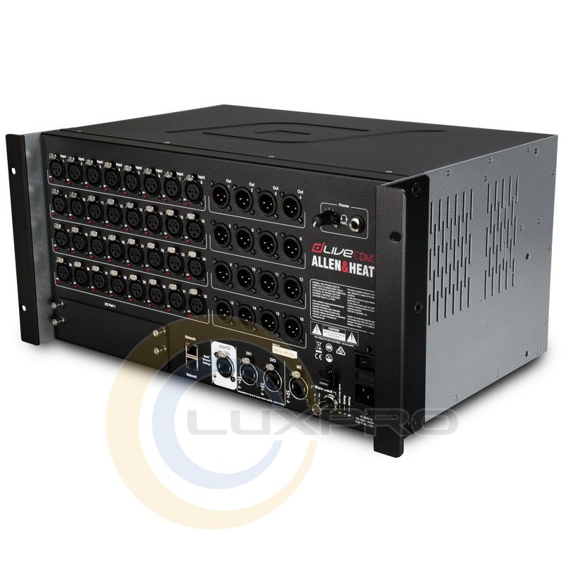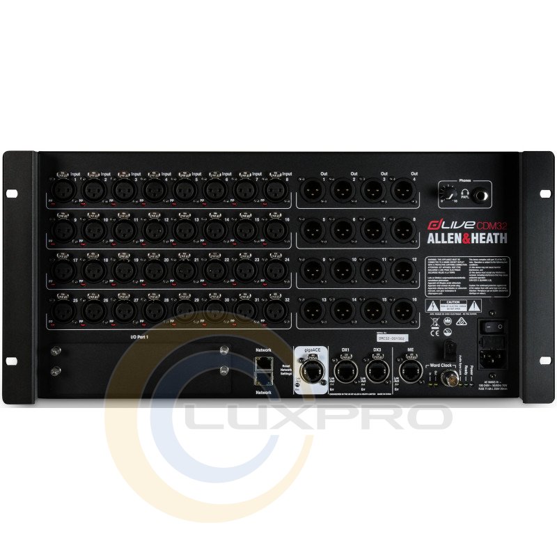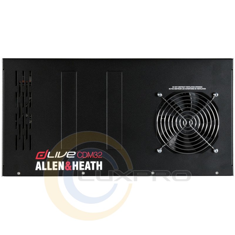 Allen & Heath dLive-CDM32 - микшерный рэк системы dLive 96кГц, поддерживает 128 входов / 64 выхода, 32 локальных mic/line входа, 16 локальных line выходов, 16 FX процессоров, интерфейсы GigaACE, DX, ME, 1x I/O слот расширения, Ethernet, Word Clock, 1 блок питания.Характеристики: