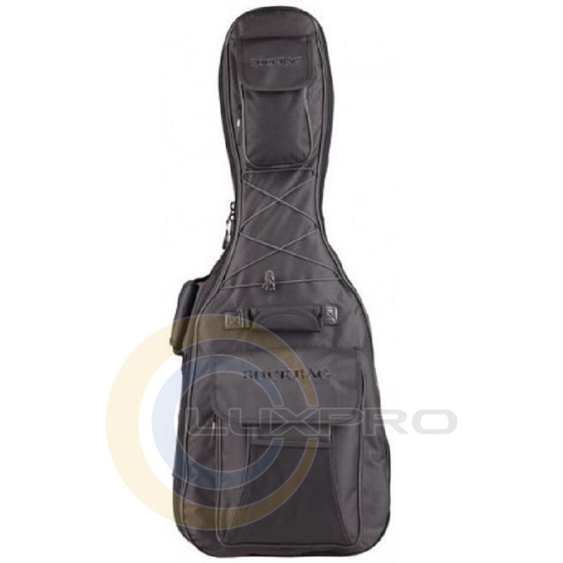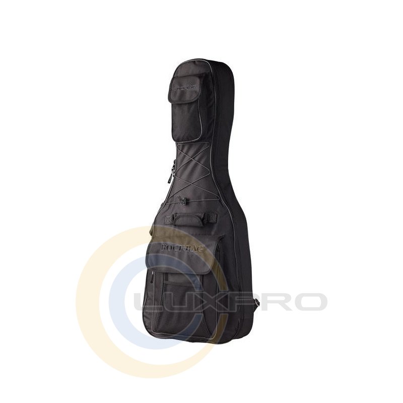 Защитные нейлоновые накладки в районе бриджа и пуговицы крепления ремня, устойчив к воде и температуре, дополнительный карман на уровне грифа (130 x 250 мм), большой наружный карман (280 x 380 мм): 2 больших отделения + 2 маленьких отделения, мягкая ручка для удобства при транспортировке гитары в руке, а также дополнительная ручка на лицевой стороне, 2 съемных ремня с регулируемой длиной, cо смягчающими подкладками для комфортной транспортировки инструмента за спиной, вышитый логотип ROCKBAG®, резиновые ножки на нижней части.