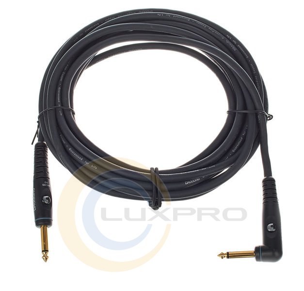 Инструментальный кабель Custom Series, 1/4" Jack (угловой) - 1/4" Jack, длинна 6,1м, позолоченные разъемы с фиксаторами, двойная изоляция, витая пара, проводники на основе бескислороной меди 24 AWG.
