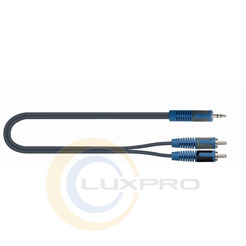 QUIK LOK RKSA150 2 - аудио кабель, разьемы: стерео mini Jack 3,5 мм - 2 RCA (тюльпан), длина 2 м.