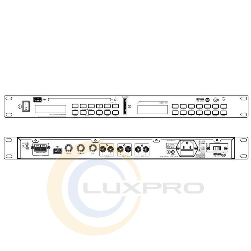 MS1033 — новый CD плеер, представляет собой двойной источник звука, построенный на 2-х независимых друг от друга секций, которые могут использоваться и параллельно. CD-плеер RCF MS 1033 может играть и как аудио треки с MP3-файлы, так и непосредственно на различные компакт-диски (например, CD-R, CD-RW и т.п.). Следует отметить, что проигрывать именно MP3 файлы он может лишь на USB-накопители типа флеш либо «Secure Digital (SD) карты (этот порт имеет совместимость со всеми мультимедийными картами). Тюнер с частотной характеристикой FM: 87,5 ÷ 108 МГц может быть доступен только посредством пульта дистанционного управления.Характеристики: