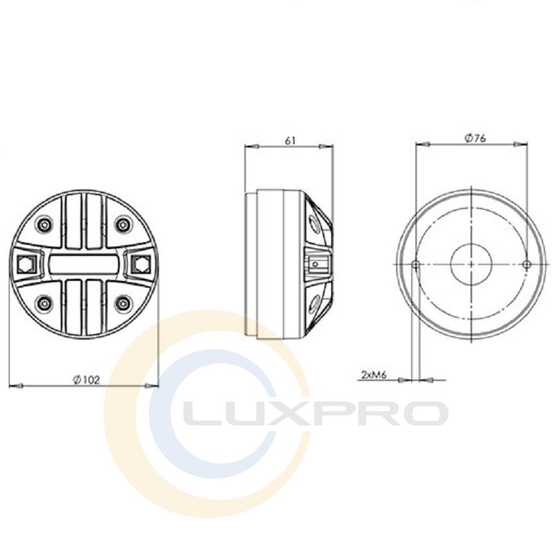 - крепление: 2 х М6 отверстий через 180° на 76 мм диаметре;