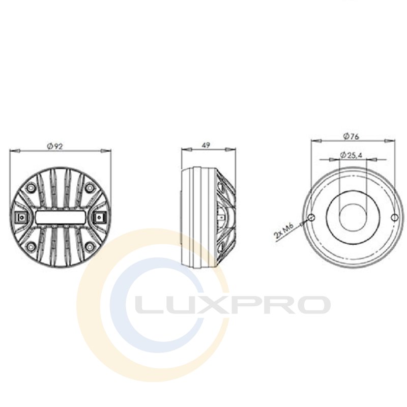 - крепление: 2 х М6 180° отверстий на 76 мм диаметре;