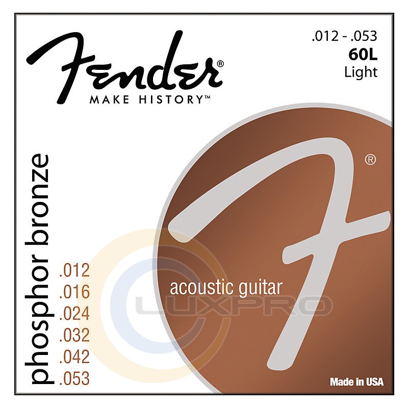 Высококачественные струны FENDER 60L для акустической гитары, бронза, 12-53, 6 струн в наборе.
