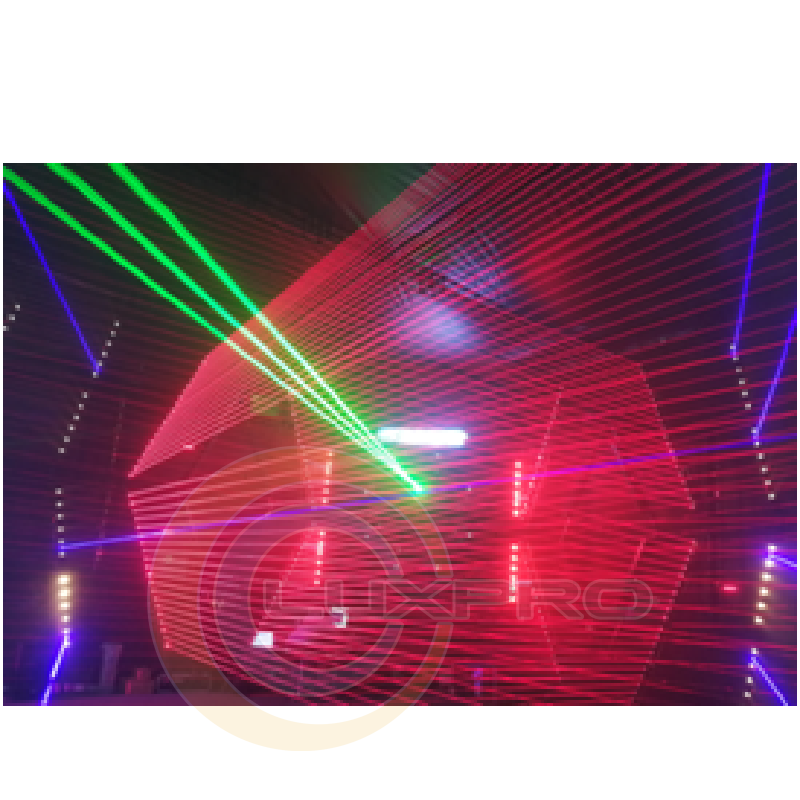 Линейный LED прожектор Perfect LLM-Array 7G_C источник света лазера 6pcs 3W Golden LED 3200K angle 7°, 7pcs 100mW(520) Green, управление осуществляется с помощью режимов авто, звук, DMX512. Имеет дисплей для управления.