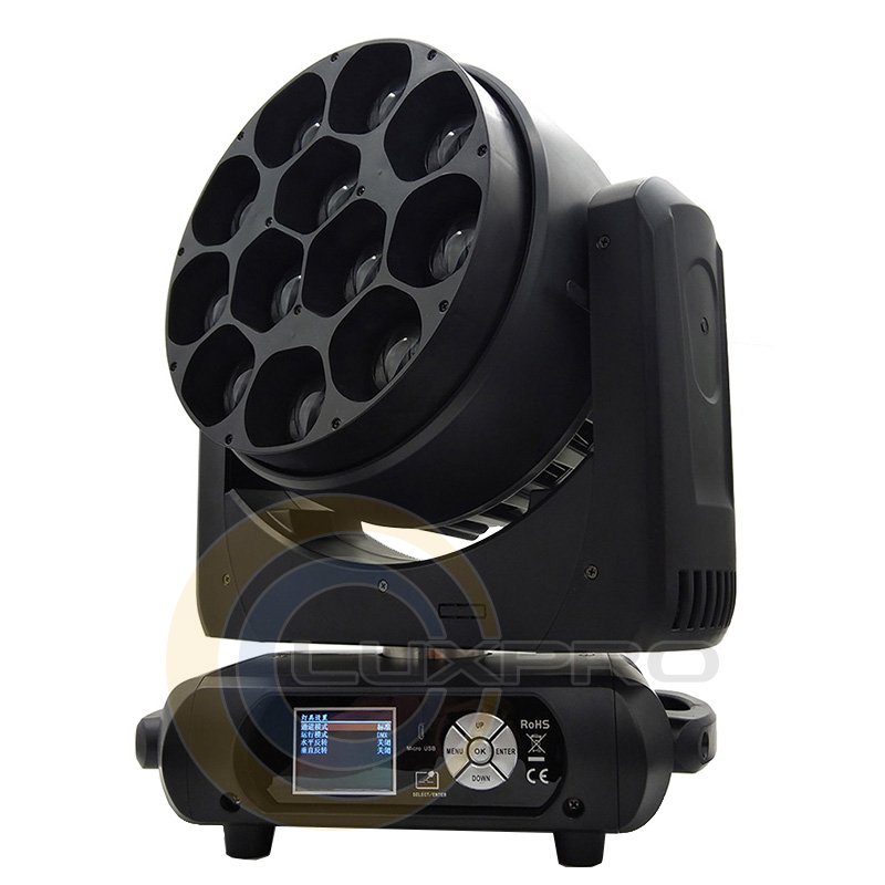 Светодиодная LED голова PRO LUX LUX LED 1240 имеет 12 диодов по 40 Вт Osram 4-в-1 RGBW. Электронный зум 4,5-36 градусов. Попиксельное управление. Пиксельный шейпинг. Линейные цветовые макросы. Pan 540 / Tilt 270 . 11/17/18/58 каналов DMX.