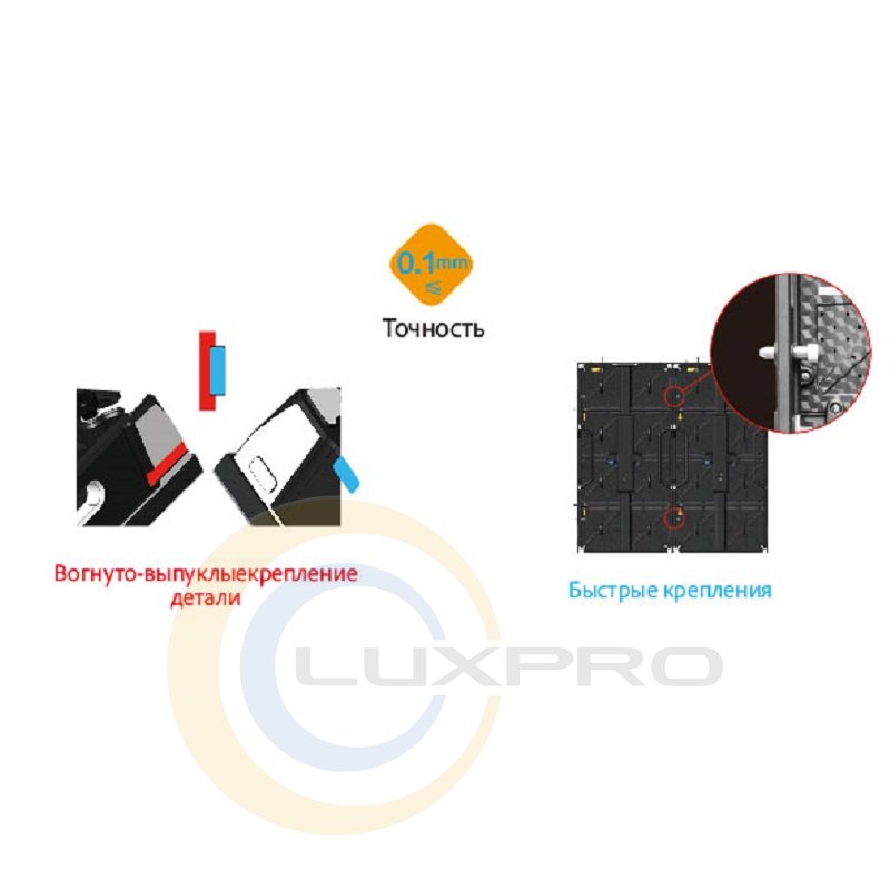 - Противоударный дизайн кабинета. Защита модулей от повреждений обеспечивает безопасность перевозки и даже если диоды разбиваются, модули остаются не поврежденными.