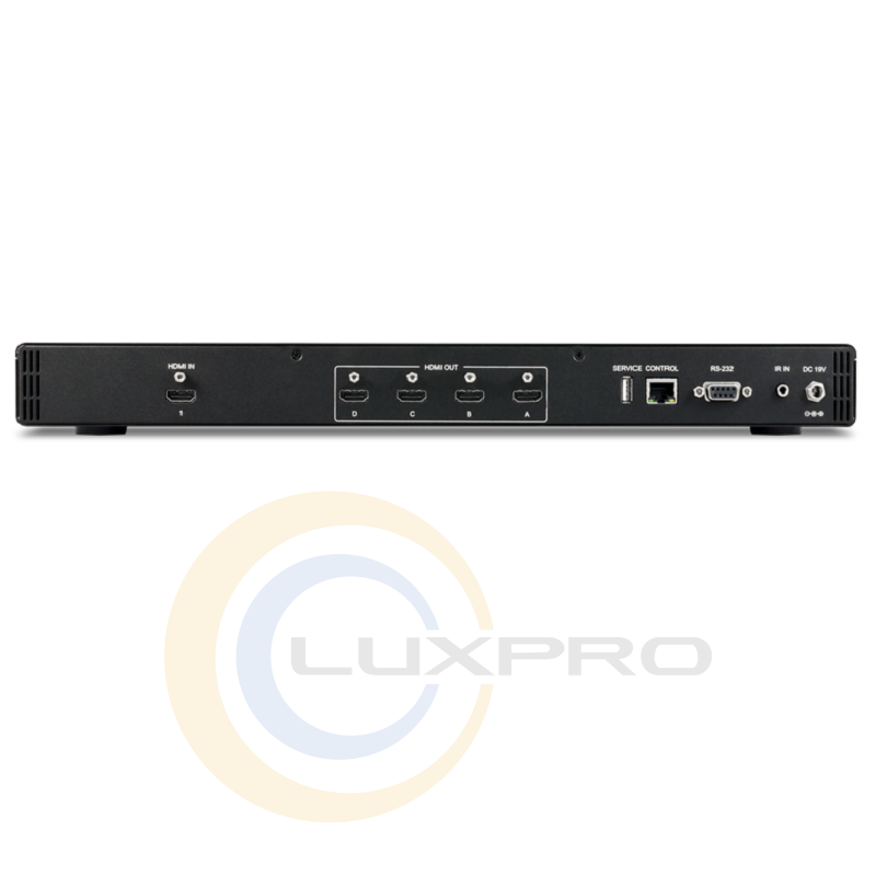 DS-MSC14-4K – контроллер видеостены с интерфейсом HDMI и поддержкой разрешений до 4K2K. Сигнал, полученный с одного входа HDMI, прибор распределяет на 4 дисплея для отображения единой картинкой, позволяя получить видеостену конфигурации 2×2. Функция компенсации окантовки модулей позволяет выровнять изображение. При одновременном подключении нескольких устройств через усилитель-распределитель возможно создание видеостен иных конфигураций (3×2, 3×3 и более).Поддерживаются разрешения WUXGA (60 Гц, RB), 1080p (24/25/30/50/60 Гц) и 4K2K (24/25/30 Гц), аудио формата LPCM до 7.1-каналов с частотой дискретизации до 192 кГц. Для настройки и управления используется простое в использовании программное обеспечение, устанавливаемое на персональный компьютер, с помощью которого можно управлять как одним, так и несколькими контроллерами, подключенным напрямую или по IP. Также все регулировки могут осуществляться командами протокола Telnet или RS-232.Характеристики: