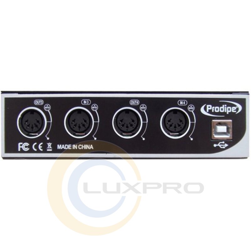 PRODIPE 4IN / 4OUT - удобный MIDI-USB аудио интерфейс на 4 входа/ 4 выхода и 64 канала, совместимый с PC и Mac компьютерами. С MIDI USB Prodipe 4i4o Вы получаете идеальный MIDI интерфейс по чрезвычайно доступной цене.Характеристики: