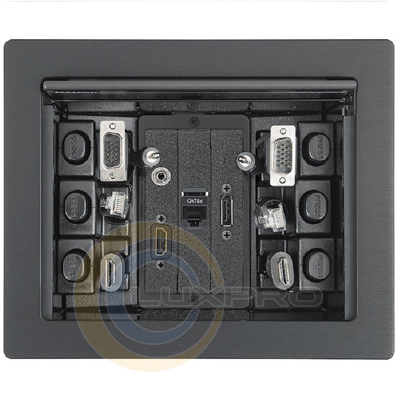 - вмещает один блок питания AC или AC+USB для Series/2, а также шесть модулей Retractor, восемь AV кабелей или четыре архитектурные адаптерные панели АAP;
