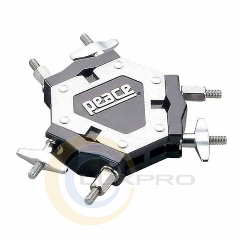 Крепление Clamp Peace DA-131 - универсальный трехсторонний клэмп, предназначен для крепления инструментов, а также вспомогательных держателей для мультиперкуссии и ударной установки в разных сочетаниях.Характеристики: