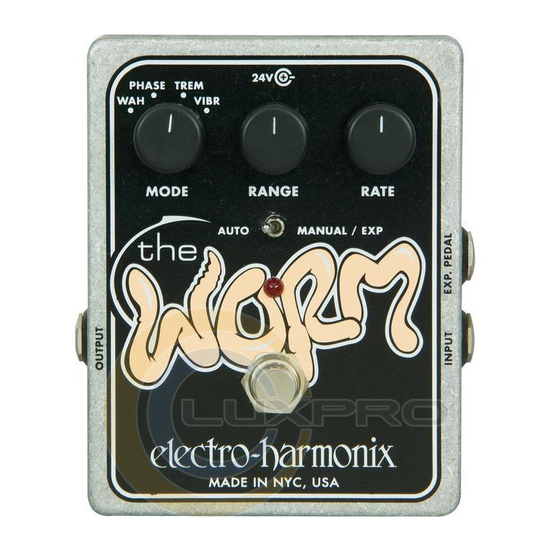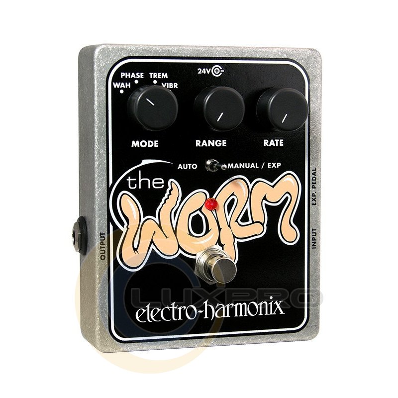 Педаль Electro-Harmonix Worm полностью аналоговый мульти эффект процессор, включающий в себя Фэйзер, Тремоло, Вибрато и Вау. Сердцем гитарного процессора является специально разработанный движок, изменяющий тон и создающий потрясающие колебательные эффекты.Характеристики: