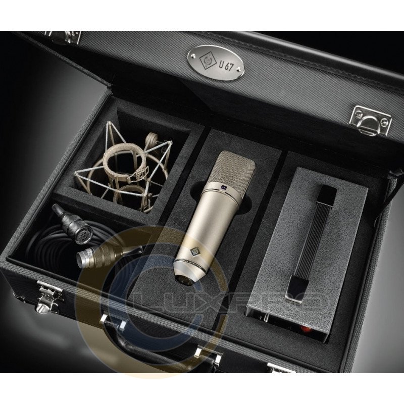 Новый U 67 поставляется в винтажном кейсе, который, как и сам микрофон, производится на немецком заводе компании Neumann.Berlin. В комплект поставки кроме микрофона входят также фирменный эластичный подвес, микрофонный кабель и блок питания NU 67 V.