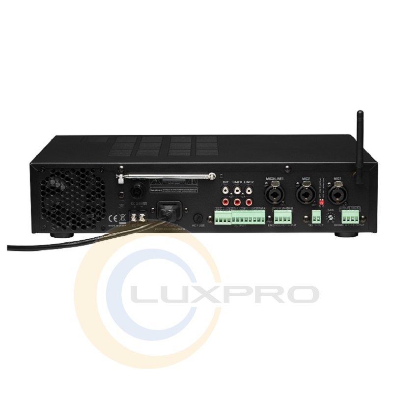 PA-120.4P - усилитель мощности, со встроенным USB-проигрывателем, 4-зон, FM-тюнер, BLUETOOTH и возможностью раздельного зонирования на 4 зон. Применяется в системах фонового озвучивания. Оснащен тремя микрофонными входами c фантомным питание +48V для конденсаторных (конференц микрофонов), двумя линейными входами и линейным выходом. Так же оснащен 4-регуляторами уровня громкости каждой зоной .