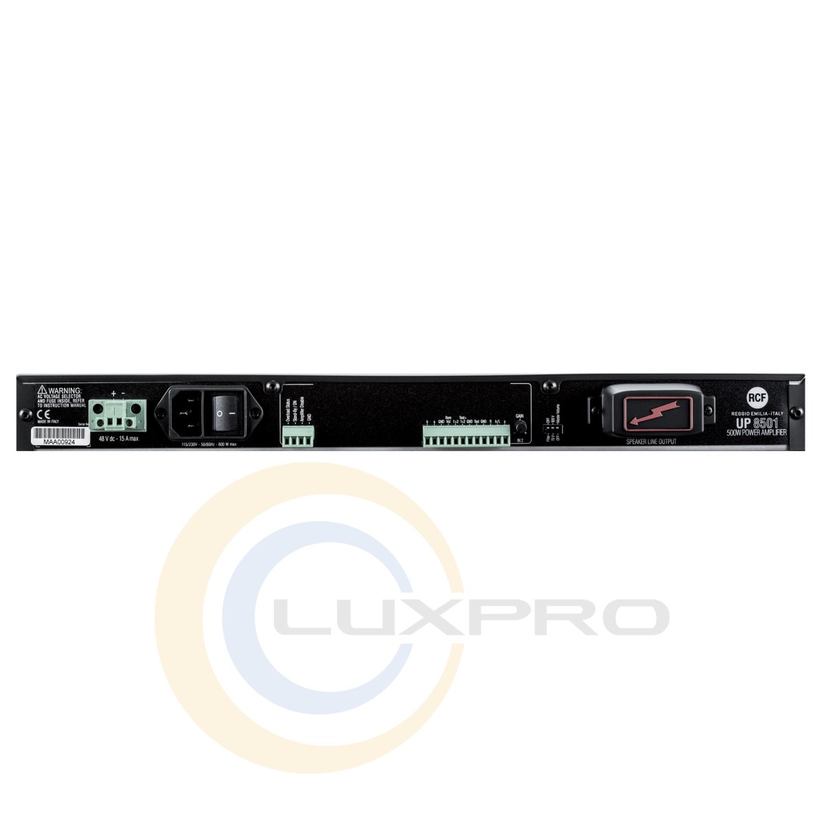Трансляционный усилитель UP8501, 1 кан. х 500Вт. Класс D, 40-16000 Гц. Сертификат EN54-16. AC:115 – 230В. 50 – 60 Гц. / DC: 48 В. 482х44х375 мм, 1U, 5,1 кг. Трансляционные усилители мощности серии 8000: RCF UP8504 / UP8502 / UP8501 разработаны на основе инновационной технологии питания и усиления фирмы RCF.Характеристики: