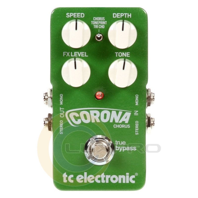 TC ELECTRONIC CORONA CHORUS – педаль эффектов для электрогитары. Педаль TC ELECTRONIC CORONA CHORUS имеет 3 типа эффекта хорус и функцию Tone Print, которая запоминает пресеты знаменитых гитаристов.Classic Chorus – режим модулирования классического аналогово винтажного хоруса. Дает очень легкий, чистый, мягкий звук, при установке малой глубины эффекта хорошо дружит с эффектом дисторшн.Tri Chorus – эффект, сочетающий в себе три хоруса, звучащих одновременно. Дает более резкий звук чем Classic Chorus, подойдет для любителей экспериментов и музыкантов, ищущих свой звук.Tone Print – это возможность загрузить из интернета пресеты известных гитаристов. Пресеты загружаются с компьютера через USB.Специалисты компании TC ELECTRONIC создали целый набор инструментов, с помощью которых любой музыкант может создавать, редактировать, а так же загружать готовые пресеты для педалей эффектов из интернета.Характеристики: