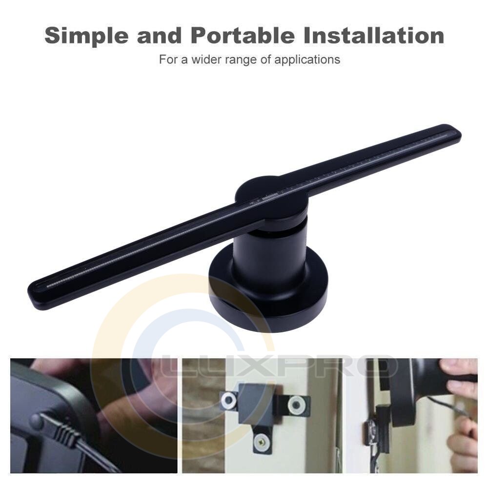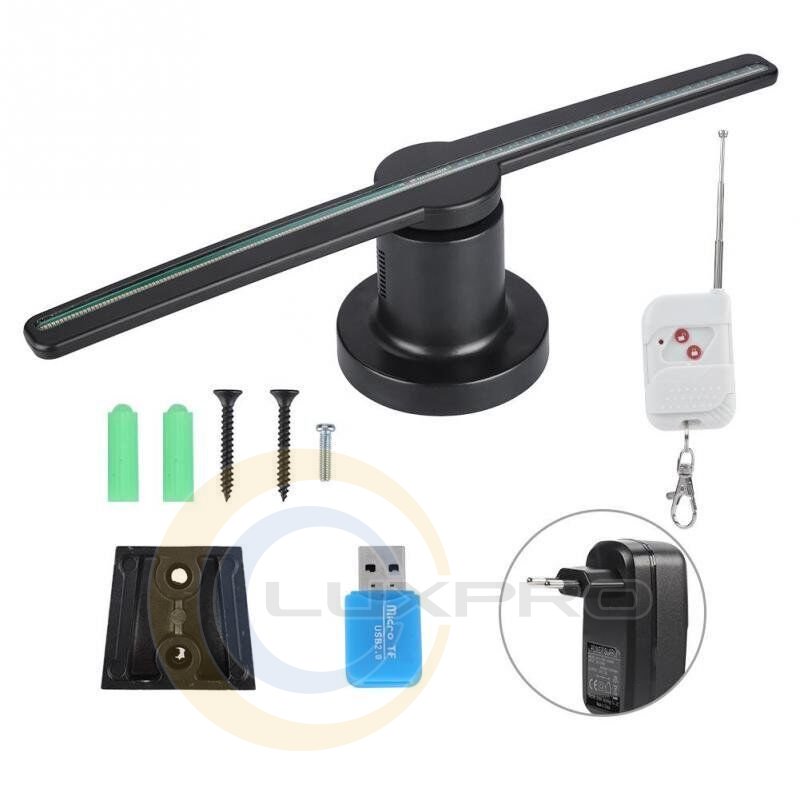 Голографический вентилятор это – лучшее решение для визуализации товаров и брендов, так и самих магазинов или массовых мероприятий и презентаций. Создать эффект 3D голограммы позволяют лопасти с лед светодиодами, которые вращаются с большой скоростью. Таким образом удается достичь эффекта 3D визуализации изображения в воздухе без видимости самого устройства.