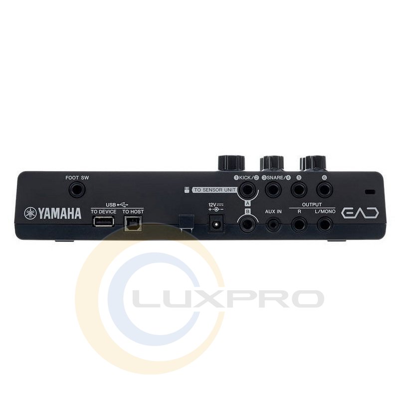 YAMAHA EAD10 - модуль электронных ударных, полифония: 64, тон-генератор: AWM2, тембры: 757, ячеек памяти: Preset: 50 User: 200, эффекты: Mic: 21, Trigger: 10 + Reverb (11), метроном, интерфейсы: DC IN (12 V), PHONES (standard stereo phone), AUX IN (stereo mini), OUTPUT L/MONO, R (standard mono phone), USB TO DEVICE, USB TO HOST, размеры: 260 х 63 х 138 мм, 76 х 88 х 78 мм, вес: 654 г (основной блок), 464 г (сенсорный блок).